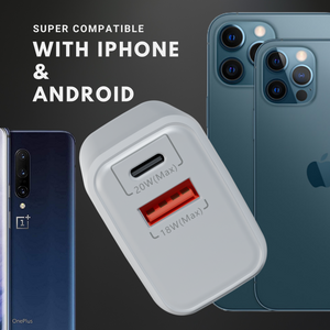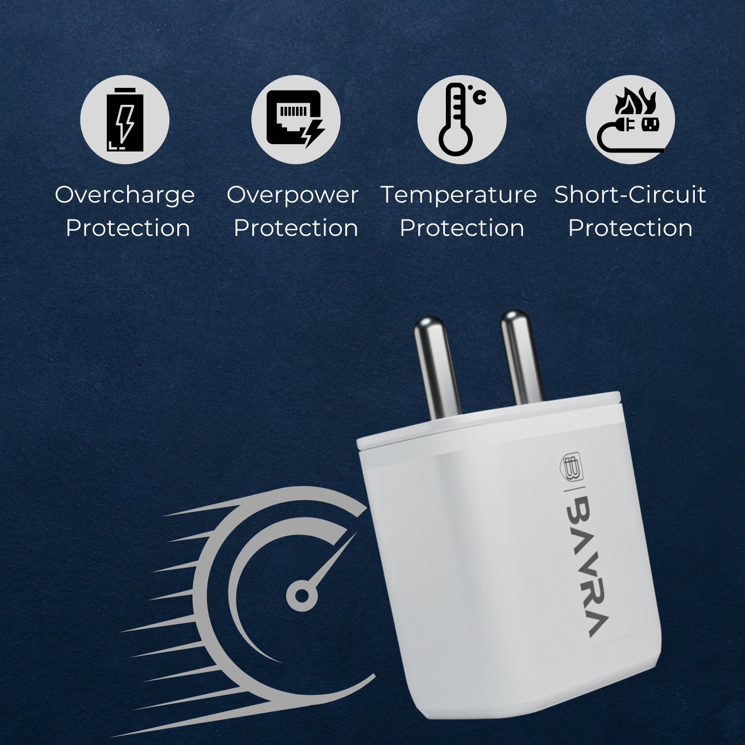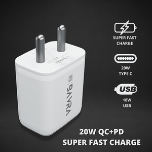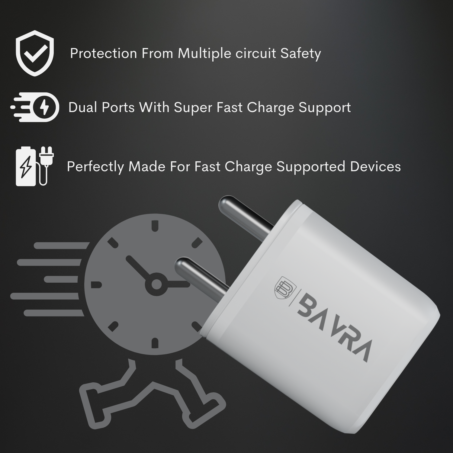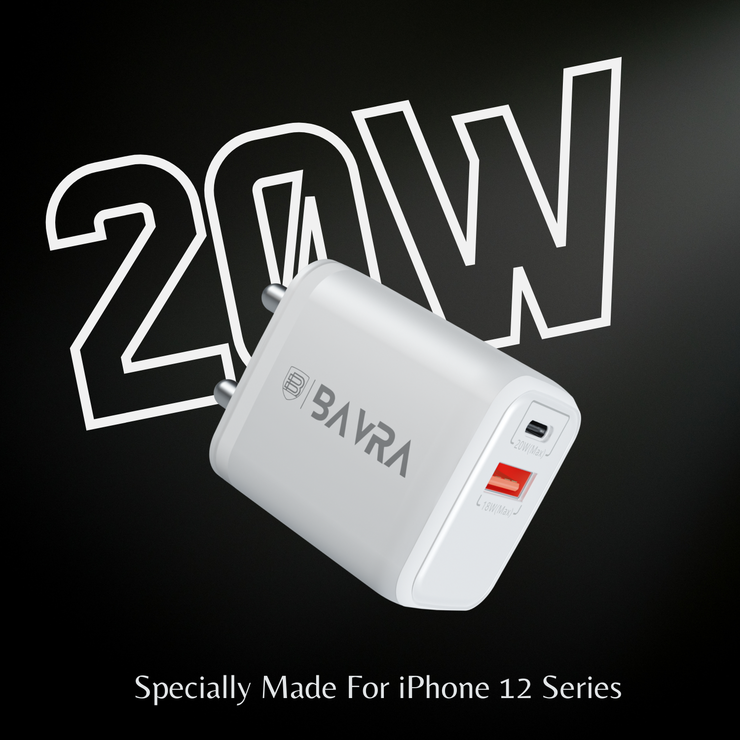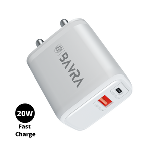 Introducing the Bavra 20W Fast Dual Port Type-C + USB Charging Adapter, a compact and lightweight solution for all your charging needs. With its powerful capabilities and convenient design, this charging adapter ensures fast and efficient charging for your devices.Despite its mini size, this charging adapter packs a punch. The 20W power output provides quick charging for your devices, allowing you to spend less time waiting and more time enjoying your fully charged devices. Whether it's smartphones, tablets, or other compatible devices, the Bavra charging adapter delivers a fast and reliable charging experience.