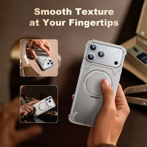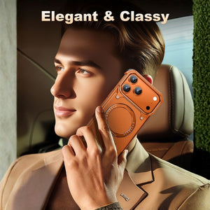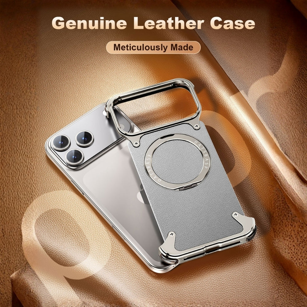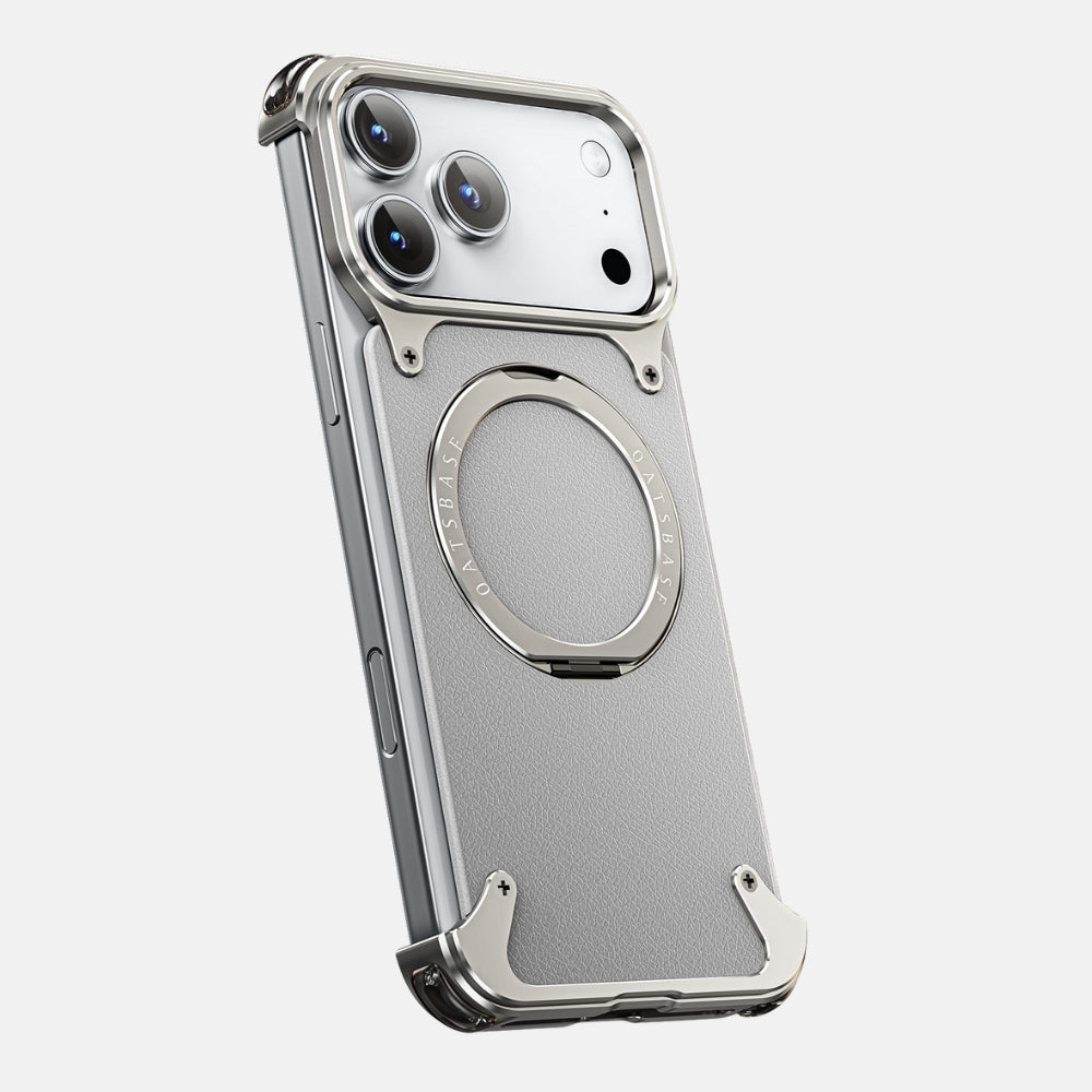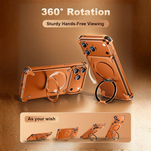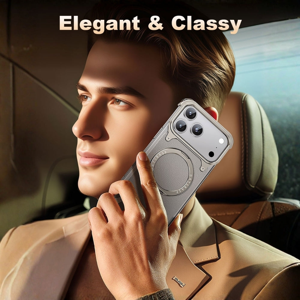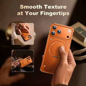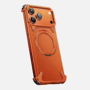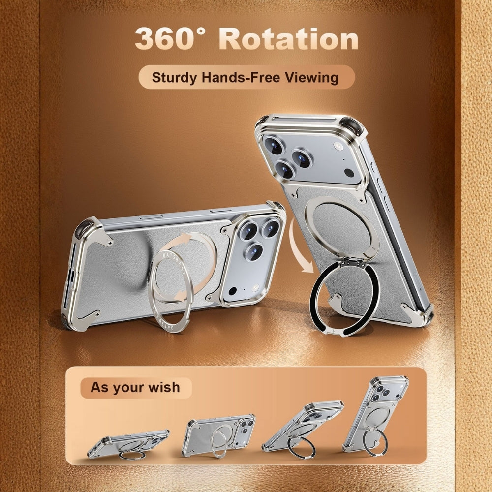 Upgrade your iPhone experience with this trendy and premium case. Featuring a durable metal bumper and a genuine leather back, it combines style with protection. Designed to support MagSafe, it ensures effortless wireless charging and accessory compatibility. The 360° rotating kickstand provides a perfect viewing angle for videos, calls, and browsing. Sleek, elegant, and functional — the ultimate protection and style for your iPhone 17 Pro.