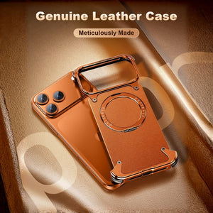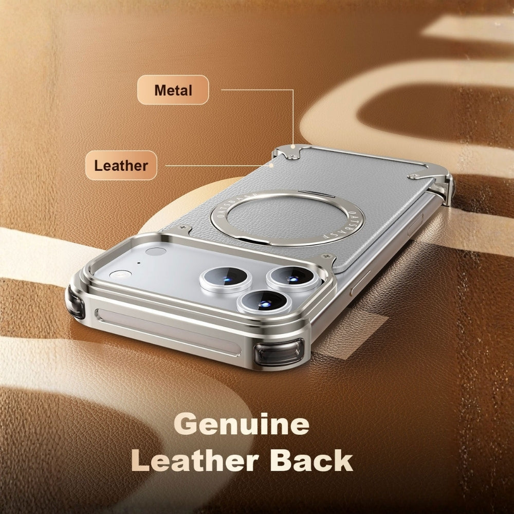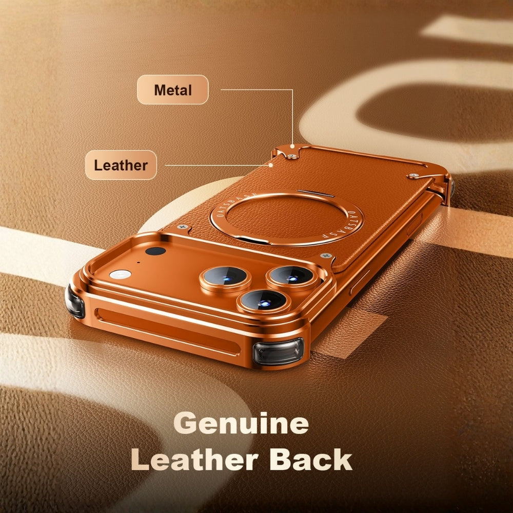 Luxury Metal Bumper Leather Case for iPhone 17 Pro