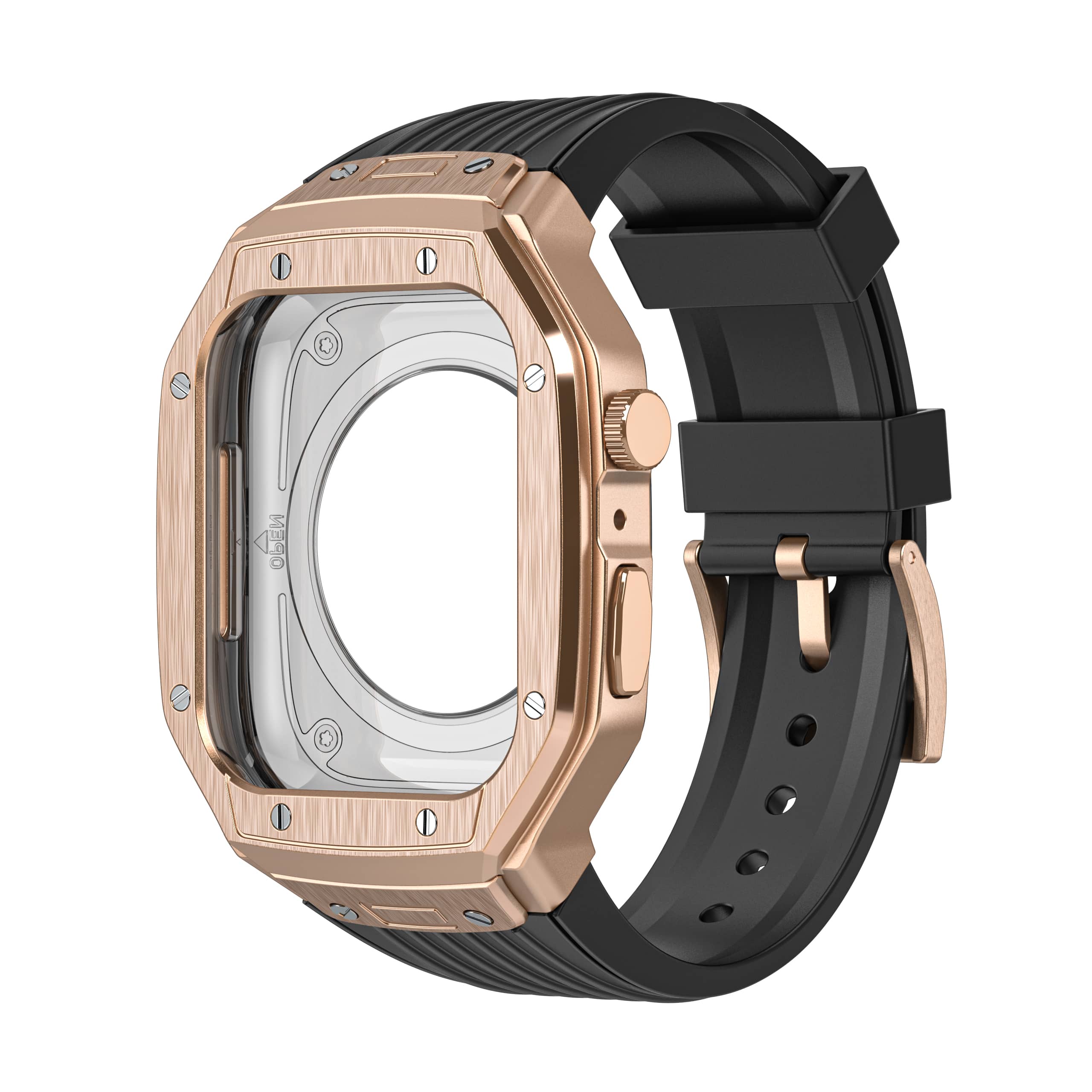 All our Luxury Apple Watch Cases are made from the highest quality premium materials to ensure your Apple Watch's safety. It gives your Apple Watch a whole new look Easy to install and remove apple watch with the case The case makes it easy to install and remove the Apple Watch. The case is compatible with Apple iWatch Series 9/8/7/6/5/4 and SE 44MM and 45MM.Included items in the box(1)Watch Case With Strap(2)Back Case 1pcs of 44MM and 1Pcs of 45MM