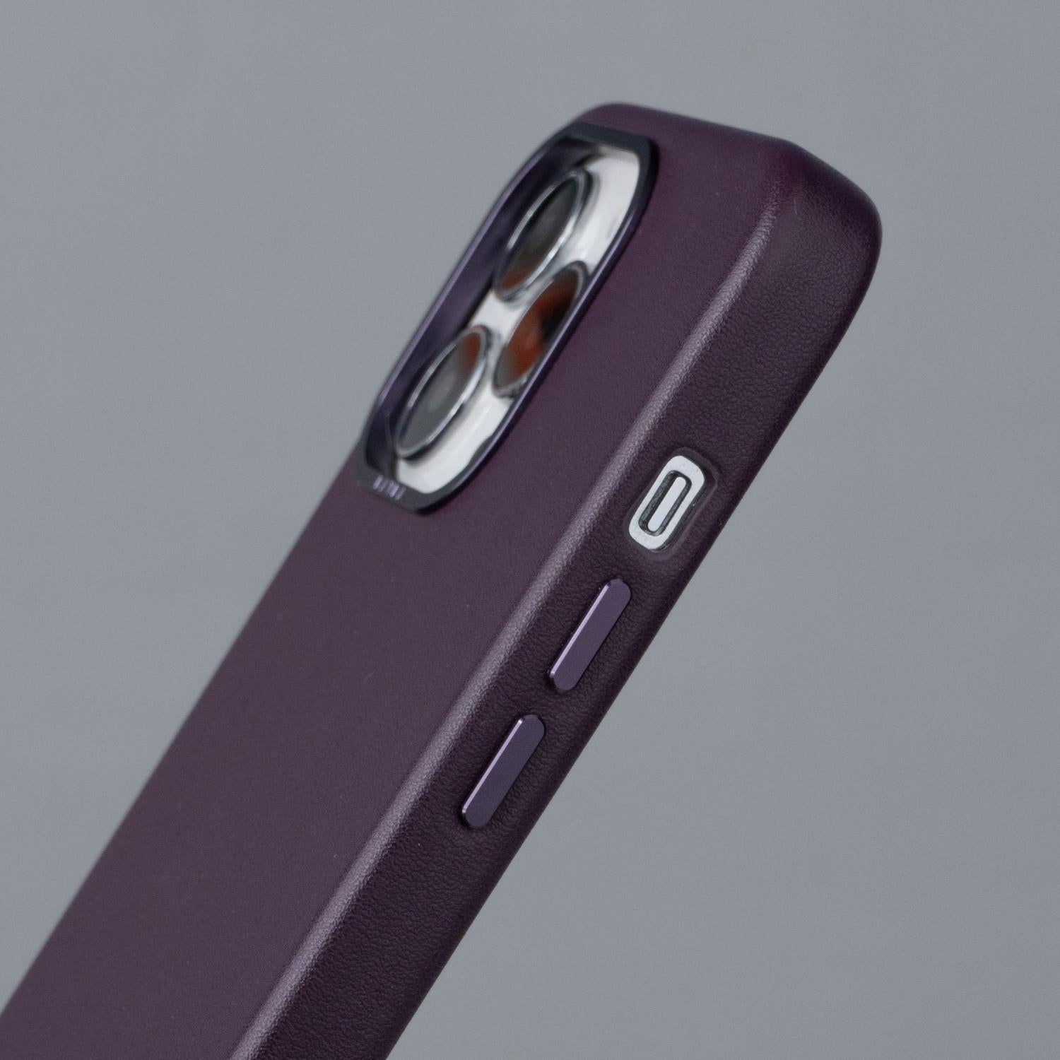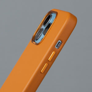 One of the standout features of this case is the inclusion of luxury metal buttons. With their sleek and polished design, these buttons add a touch of sophistication to your device, elevating its overall appearance. The tactile feedback they provide makes it a pleasure to interact with your iPhone's buttons, offering a seamless user experience.We understand that protecting your iPhone's camera is of utmost importance. That's why our Genuine Leather Case features a precisely designed metal frame around the camera module. This frame offers reliable protection against accidental bumps, scratches, and drops, ensuring your camera stays safe and functional.